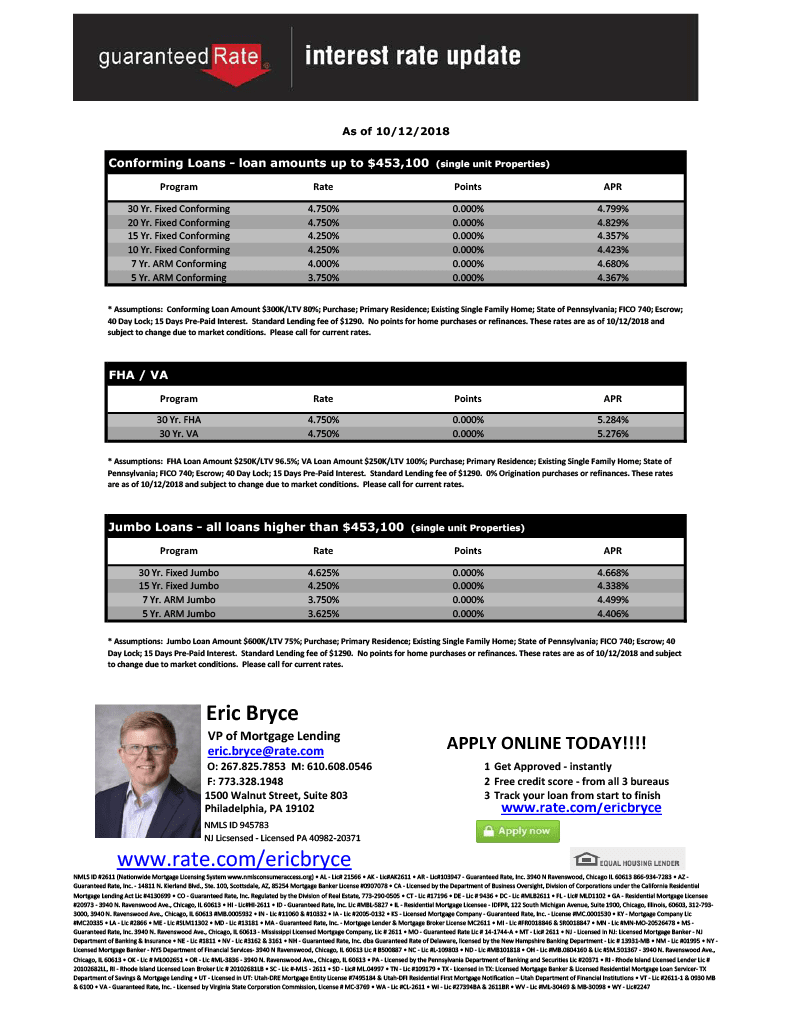 Rate Sheet October 13th, 2018