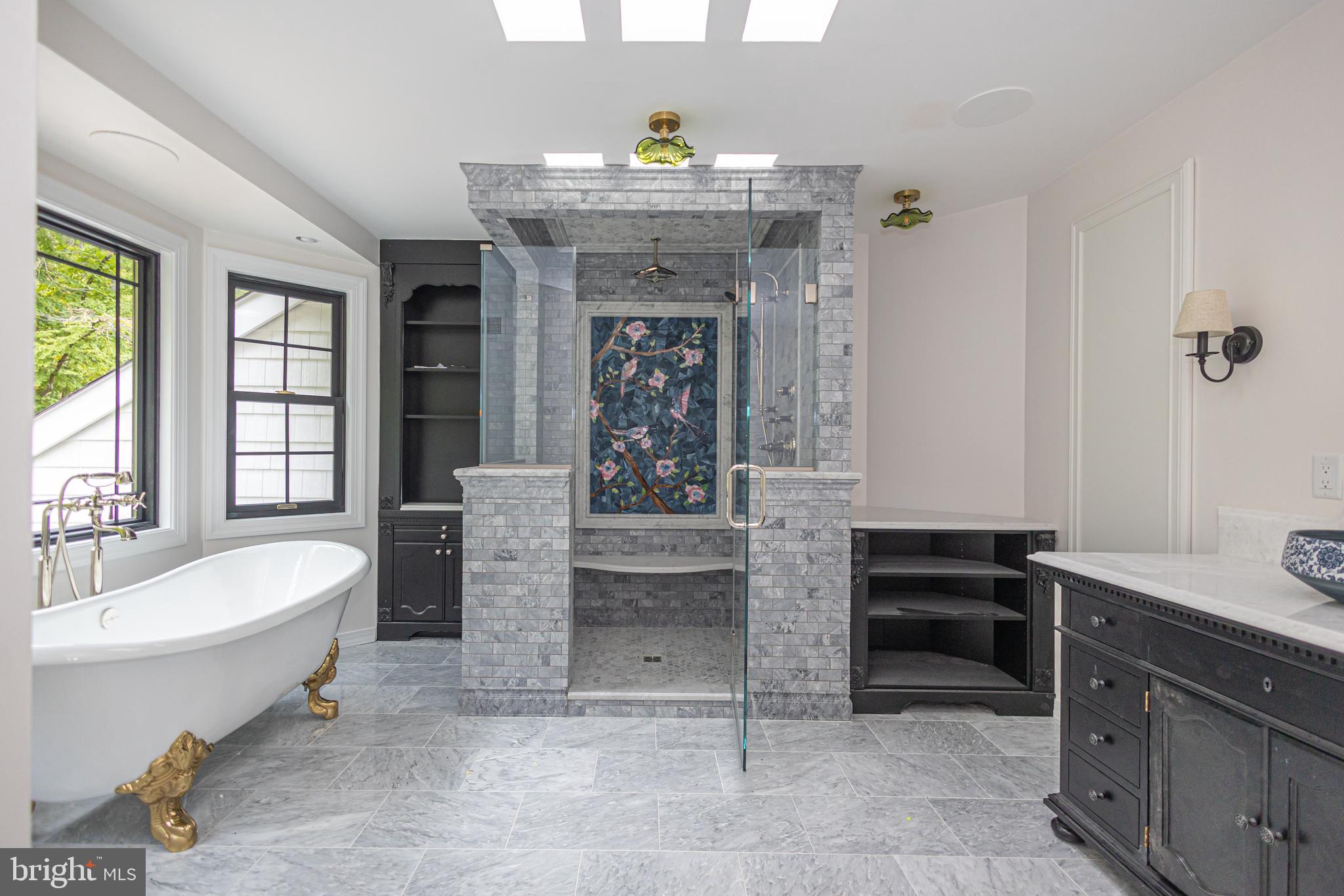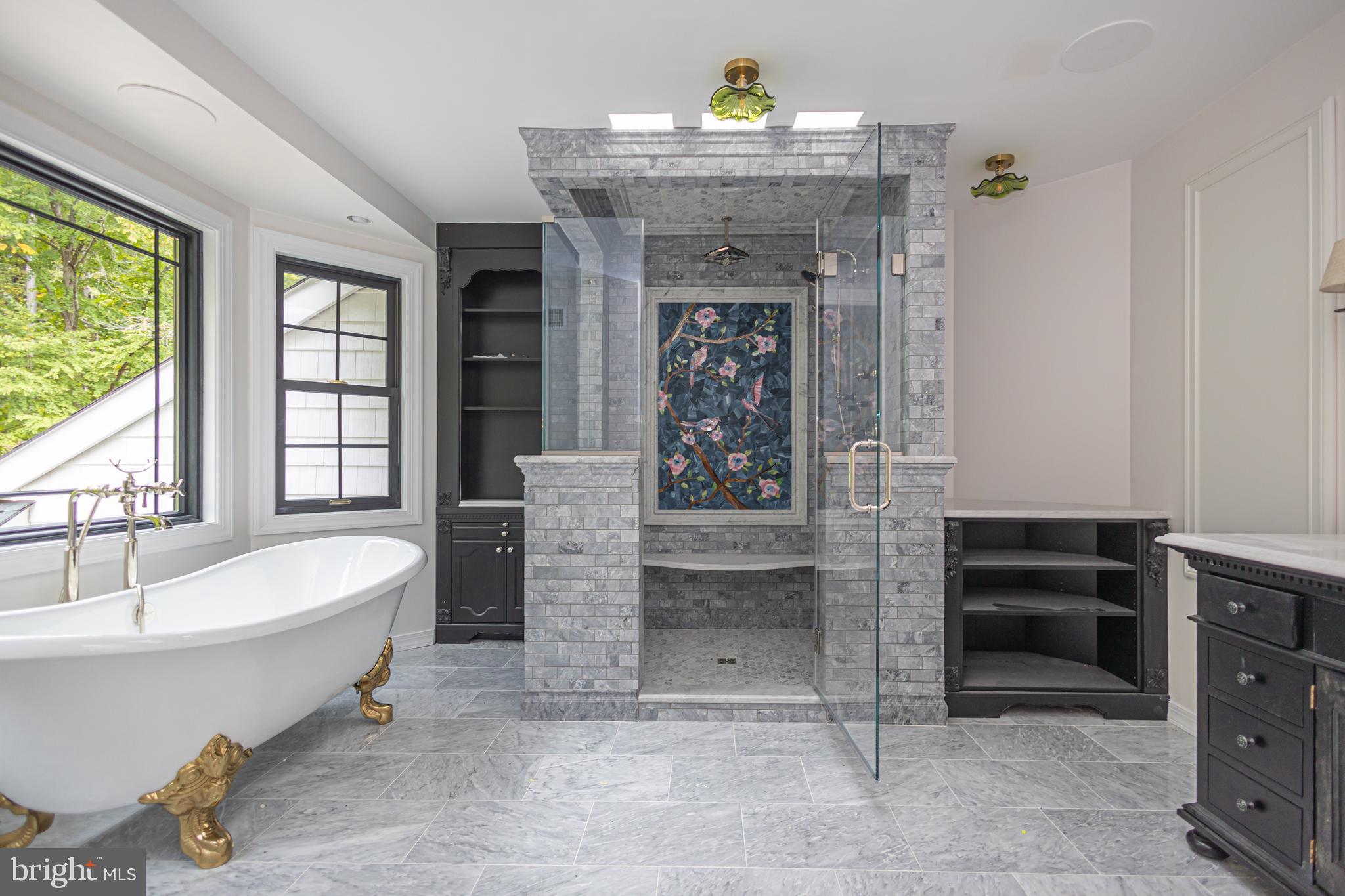 This prestigious Tudor style home sits commandingly perched atop a gently sloping hill on 2.5 acres in the prestigious enclave of Bellinghamshire Estates. The drive up to your new home inspires awe each time you ascend to your 6,531 sq ft home which includes a finished basement of approximately 1,500 sq ft. Step up and into a turn-key home of timeless elegance and leave behind the delays, disruptions, and frustrations of attempting renovations yourself. From bedrooms to basement virtually the entire house recently received a grand makeover between 2023 and 2026. The three (3) original garage doors have been replaced with two larger overhead doors (one is 8' x 11' and the other is 11' x 18'). The entire garage was updated and a new stair handrail and vastly enlarged landing platform leading into the home has been recently installed. A dedicated split HVAC unit has been installed allowing the garage to be heated or cooled. All rooms have received beautiful new lighting fixtures including crystal flush mounts, sconces and recessed lights. The main floor foyer has a stately, large-scale wood chandelier. There's also a new crystal chandelier installed in the backyard side living room. Newly installed and pristine, the carpeting throughout the house includes three staircases. Additionally, two basement bedrooms received new carpeting two years ago and are both in excellent condition.Nearly every room including kitchen, sunroom, and bathrooms has been freshly painted with neutral designer colors by Benjamin Moore. This includes the garage. The garage floor received epoxy floor treatment and finishing. The main front entry has stately double-size doors, a portico and brick steps and landing. The home is perfect for hosting friends and family in a multitude of rooms. Enjoy two living rooms, a sunroom, and a library which has doubled as a dining spot and for board/card games. Upon entering you'll be greeted by a stately Louis XIV white/gray stone marble fireplace in the entry living room. The surround has been entirely updated with classic gray/white brick. The propane fireplace box has just been replaced with a stunning remote-controlled Mendota insert and is equipped a heat blower. Another propane fireplace resides in the second living room. The stone facade is two stories high. It has been updated with six layers of variations of soft neutral tones of milk paint to give it a fresh airy feel. Sconces flank either side. This fireplace box has also just been replaced with a remote-controlled Mendota insert and heat blower. This room's large French doors and windows open to the backyard. Recently renovated main floor powder room. There are two staircases allowing quick passage through the home with ease and convenience . The master bedroom was redesigned and now offers views to the lovely park-like backyard. A very large picture window was installed which is flanked by two additional windows on either side. Additionally, a sitting room was framed with a decorative transom above its wide entry door. A generous space which works for anything from an infant's crib, home office, yoga/stretch space and cozy reading room to an artist's space as it provides glorious natural light. The master bath was entirely remodeled with a multitude of luxuries such as heated floors, Sonos audio system, Walker Zanger marble, WZ marble shower with Brizo (Delta's luxury line) shower heads and jets and a clawfoot tub. Restoration Hardware sink vanity, all styles of lighting: recessed, flushed, sconces, a Kohler toilet, and Anderson windows. The crown jewel is the New Ravenna Mosaic - a true art piece. Two of the three additional upstairs bedrooms have brand new built-in closet systems. The closet doors and the bathroom doors were newly replaced with solid wood pine doors. Two upstairs bedroom bathrooms have bidet toilet seats installed. Stacked LG washer/dryer on the 2nd level adjacent to all bedrooms.