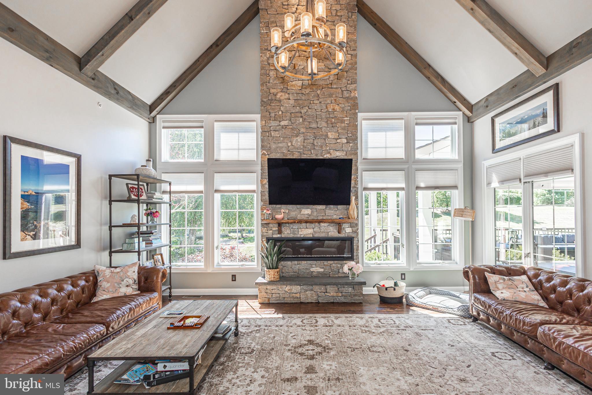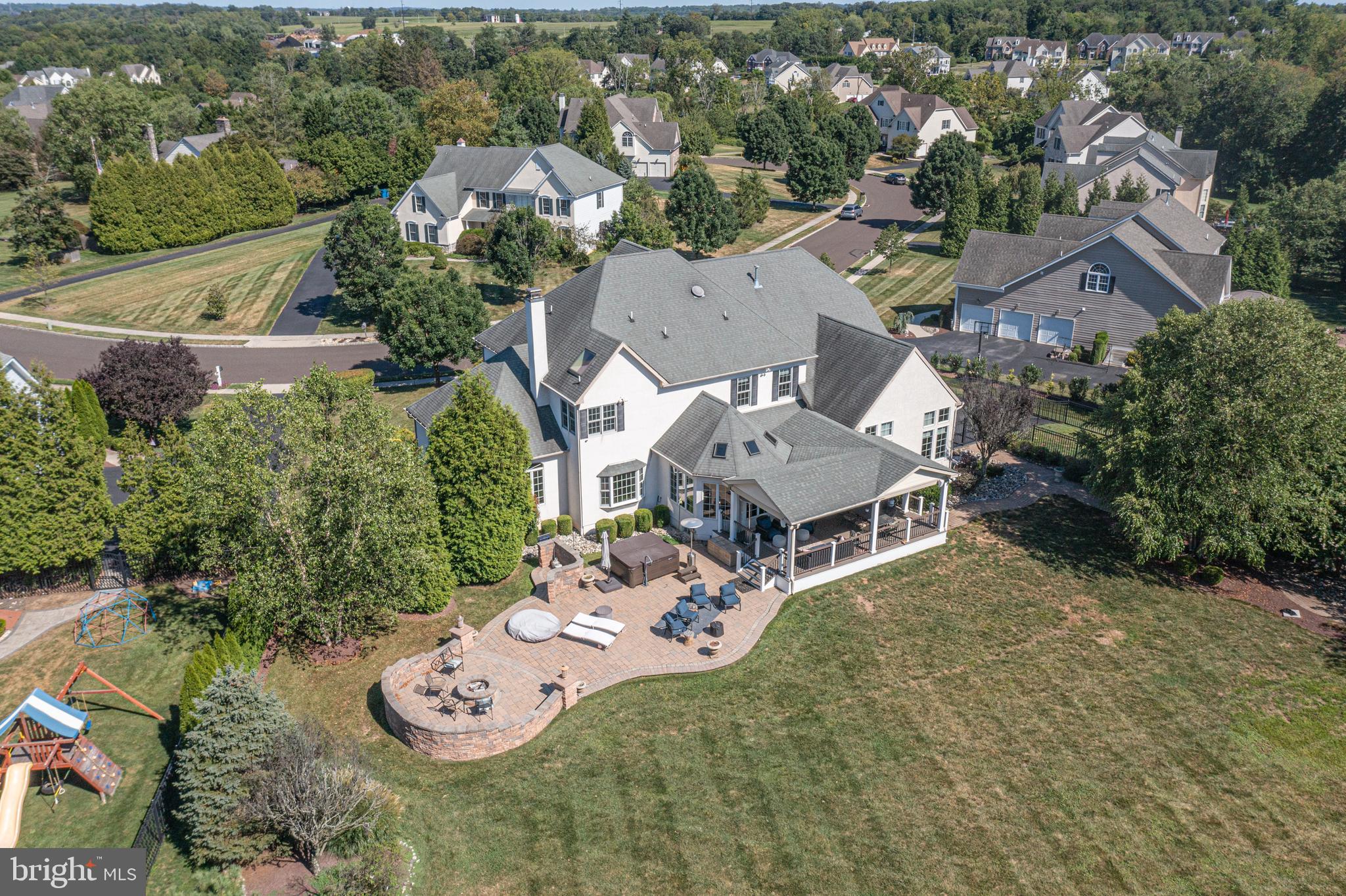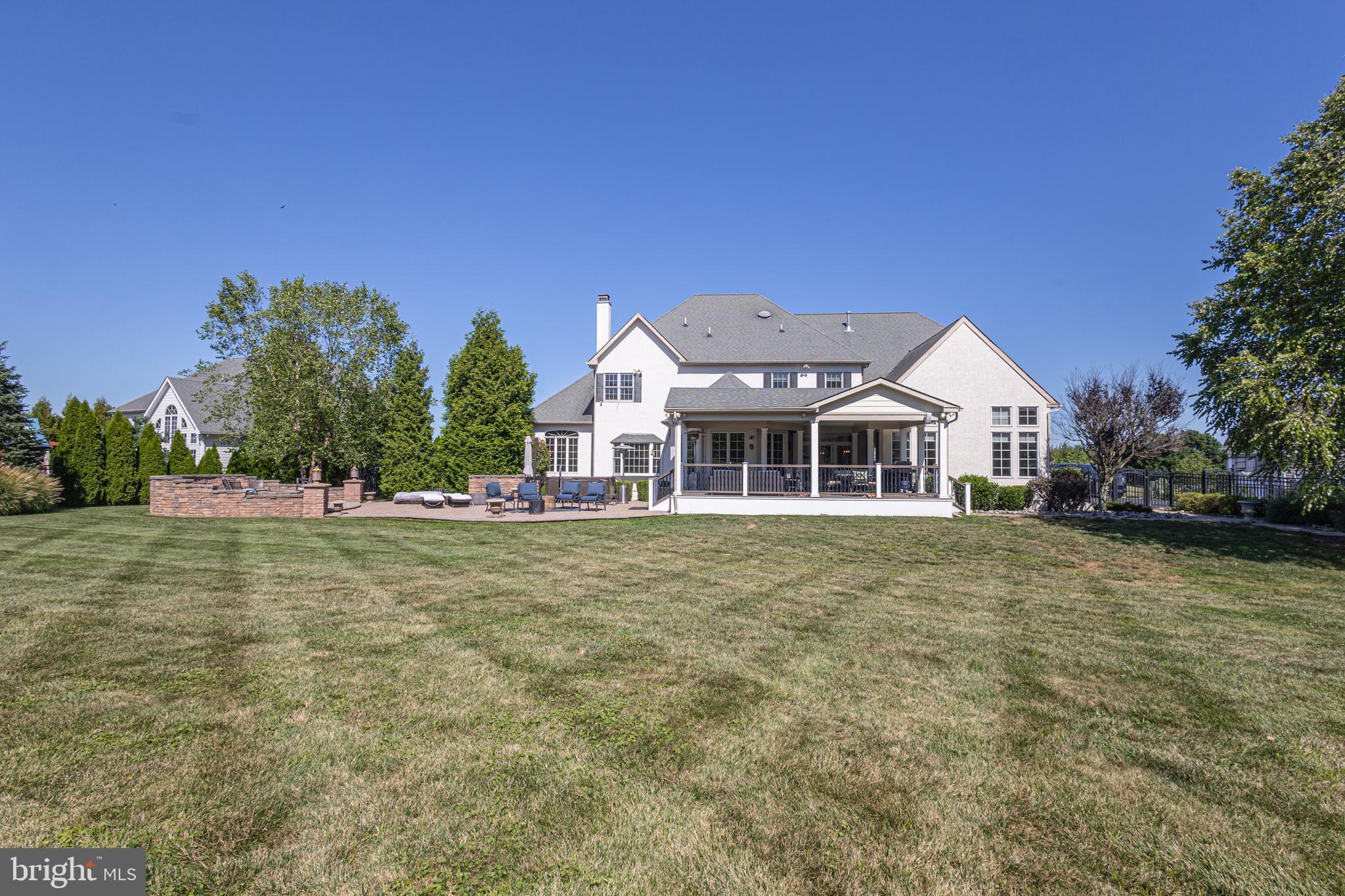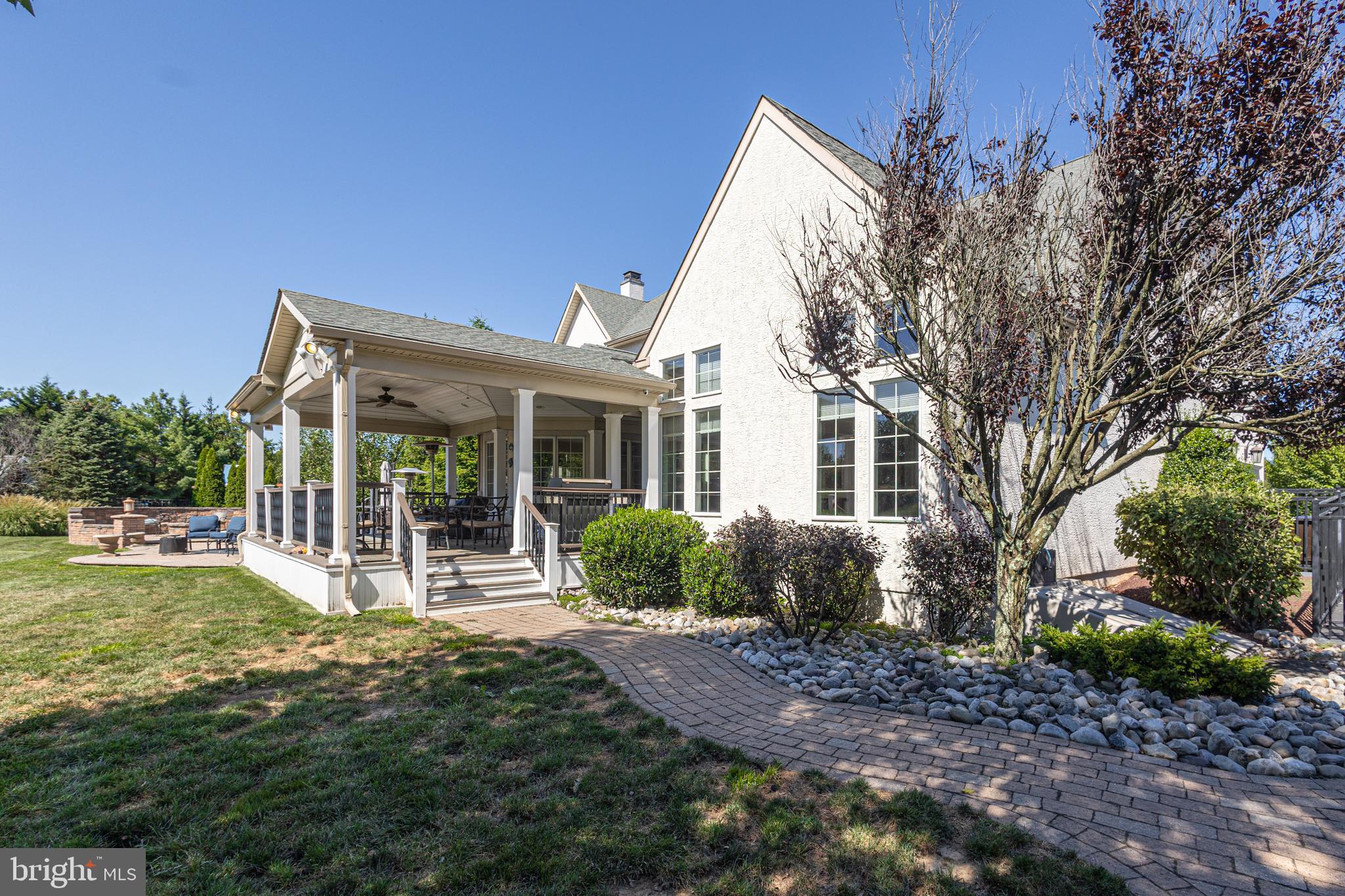 This exquisite 5-bedroom, 4.5-bath home is a true masterpiece of elegance and modern comfort. Situated on over an acre of property, you are greeted by professionally landscaped and hardscaped beauty in one of the most sought-after neighborhoods. As you step inside, you'll be captivated by the architectural design in the foyer, highlighted by the curves of the staircase and the stunning chandelier. The beauty of the hardwood floors flows throughout most of the main floor, with the warmth of carpet insets accentuating and defining the living and dining rooms. A solarium adjacent to the living room is the perfect place for drinks in front of the fire, game nights, a theater room, or anything you wish to create. The great room is a true focal point, adorned with majestic wood beams that accentuate the soaring ceilings, floor-to-ceiling stone details, and expansive windows that allow sunlight to seamlessly flow through. A sleek electric fireplace adds design and ambiance to this inviting gathering space, making it the ideal spot for family gatherings or entertaining guests. The heart of this home is undoubtedly the custom kitchen, where culinary dreams come true. Boasting top-of-the-line appliances, exquisite cabinetry, and luxurious countertops, this kitchen is a chef's paradise. Whether you're preparing a gourmet meal or hosting a casual brunch, there is both beauty and functionality. Step outside, and you'll discover an oasis of relaxation on the covered porch. These outdoor spaces are perfect for al fresco dining, lounging, or simply taking in the serene views of your beautifully landscaped surroundings. Multiple social spaces have been designed in the yard for relaxing in the hot tub, chatting around the firepit, or reading a great book while enjoying the privacy and beauty. The opulence of this home doesn't end there. A finished basement with a full bath awaits your indulgence, complete with a wet bar for entertaining and a full gym for maintaining an active lifestyle. Whether you're watching the big game, mixing cocktails with friends, or working up a sweat, this lower level offers endless possibilities for enjoyment. With 5 spacious bedrooms and 4.5 bathrooms, including a master suite that exudes luxury and comfort, this home provides a retreat for every member of the family. The master bath boasts a soaking tub and glass-enclosed shower, ensuring you can relax and rejuvenate in style. In the sought-after Ridings of Warwick, you'll enjoy a lifestyle of exclusivity, privacy, and convenience. This home is not just a residence; it's a statement of success, a sanctuary of style, and a haven of comfort. Experience luxury living in this breathtaking property, located within minutes of restaurants, shopping, major roadways, and the National Award-Winning Central Bucks School District.