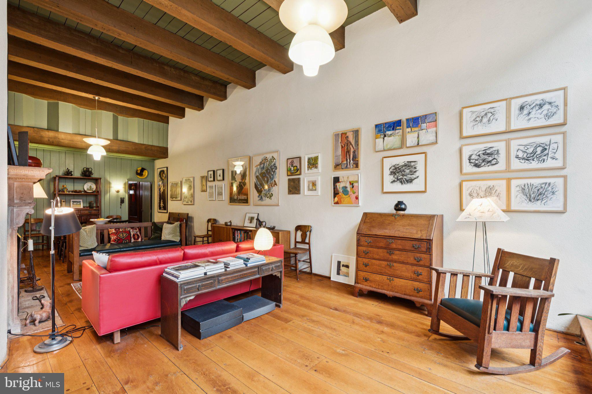 Nestled on a quiet, tree-lined block in Fitler Square, just steps from Fitler Square Park, 2420 Pine Street is a charming 3-bedroom, 2-bath townhome that beautifully blends historic character with warm, inviting living spaces. The home welcomes you through a paneled vestibule with coat closet, opening into a striking living room featuring soaring ceilings, exposed wood beams, wide-plank hardwood floors, and an ornate fireplace. A dramatic wall of glass with one-of-a-kind stained glass panels overlooks the private patio and fills the space with natural light. This expansive room easily accommodates both living and dining areas, creating a comfortable setting for everyday living and entertaining. Just beyond the dining area is the thoughtfully designed kitchen, featuring ample cabinetry, stainless steel appliances, subway tile backsplash, and generous counter space. Not to be forgotten is the brick patio, a true urban oasis, complete with landscaped flower beds and plenty of room for a dining table, fire pit, or lounge seating. The upper levels offer a comfortable and flexible layout. The first bedroom features wood paneled walls, built-ins, and large windows. Just a few steps up is the spacious primary suite, complete with built-ins, abundant natural light, and access to a private balcony, perfect for morning coffee overlooking the neighborhood. An ensuite full bath and charming office nook with shelving complete this level. A few steps above is an additional bedroom with its own ensuite bathroom. The unfinished lower level houses the laundry and offers space for storage. Located in one of Philadelphia's most beloved neighborhoods, this home is just moments from neighborhood favorites including Rival Bros Coffee, Mr. Rabbit Coffee, Cafe Lutecia, Trattoria Carina, Ambrosia BYOB, and Rosy's Taco Bar, as well as Fitler Square Park, the Schuylkill River Trail, Markward Playground, the dog park, and more.