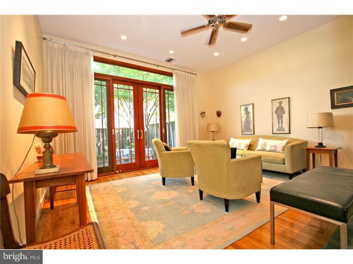 Stunning home with 2 car PARKING and a serene patio and a deck with skyline views. Lovely block. Gorgeous, with custom updates throughout, exhibiting true pride of ownership. The tasteful, high-end breakfront was built by a master carpenter and provides separation between the kitchen and dining room, and provides exceptional functional storage and design. The kitchen was custom designed with built-in Frigidaire Gallery appliances. Light pours into the living room from custom Pella sliders leading to a spacious and tranquil back patio. Hardwood floors. The 2nd floor has two great sized bedrooms with generous closets, a completely updated full bath, and washer/dryer. The 3rd floor master suite is impressive, with a beautiful master bath and a dressing area with California closets. South facing deck with skyline views. Ample storage in the lower level next to the garage. Superb value and location. Just blocks from the Fairmount Restaurant Row, the museums and the Schuylkill River bike and running trails.