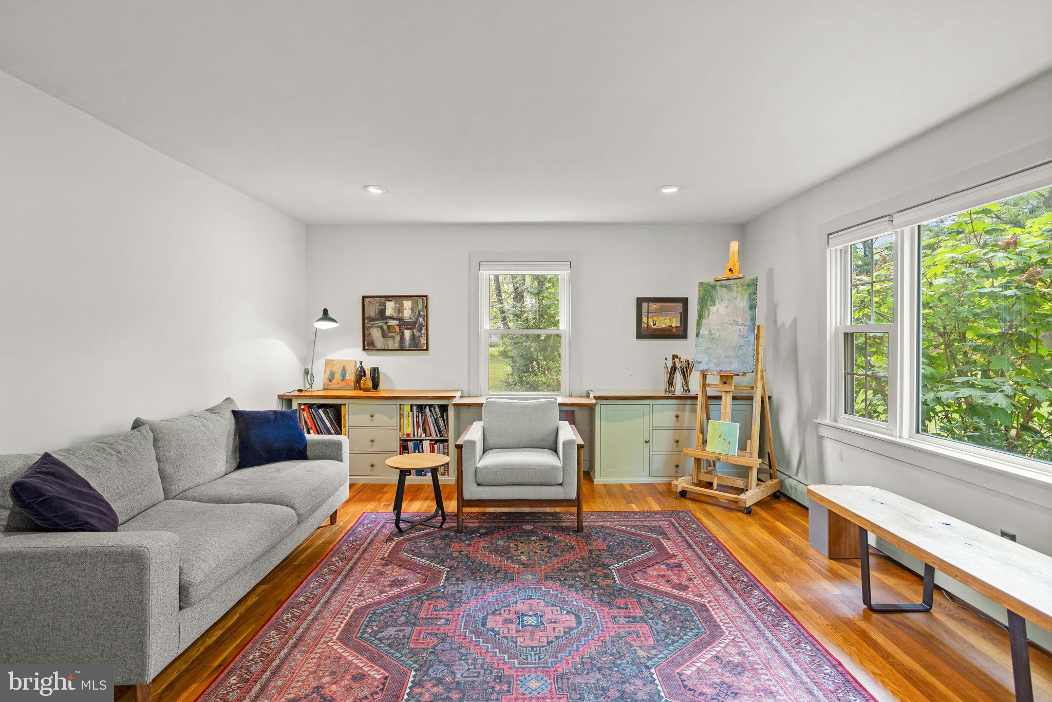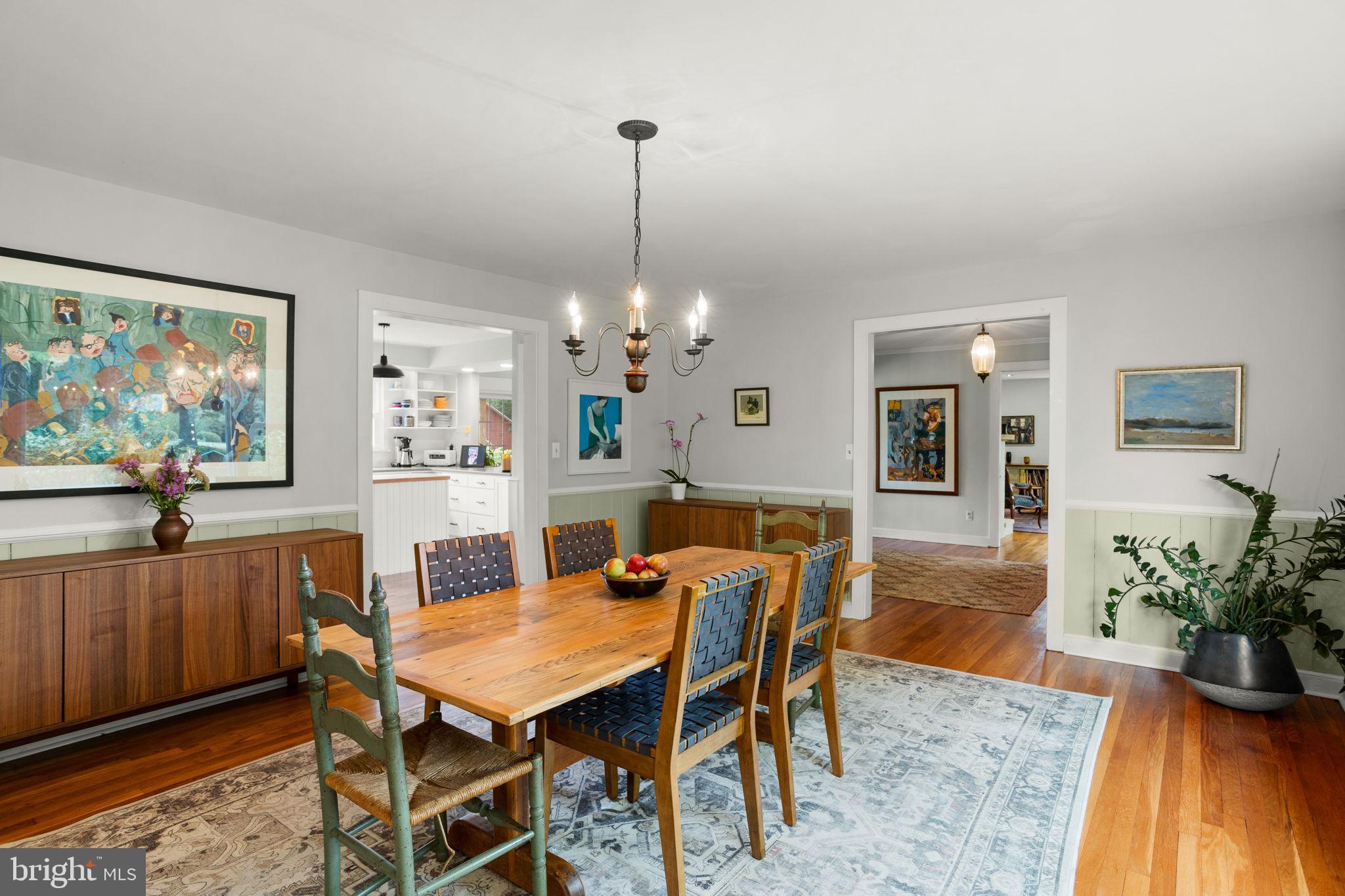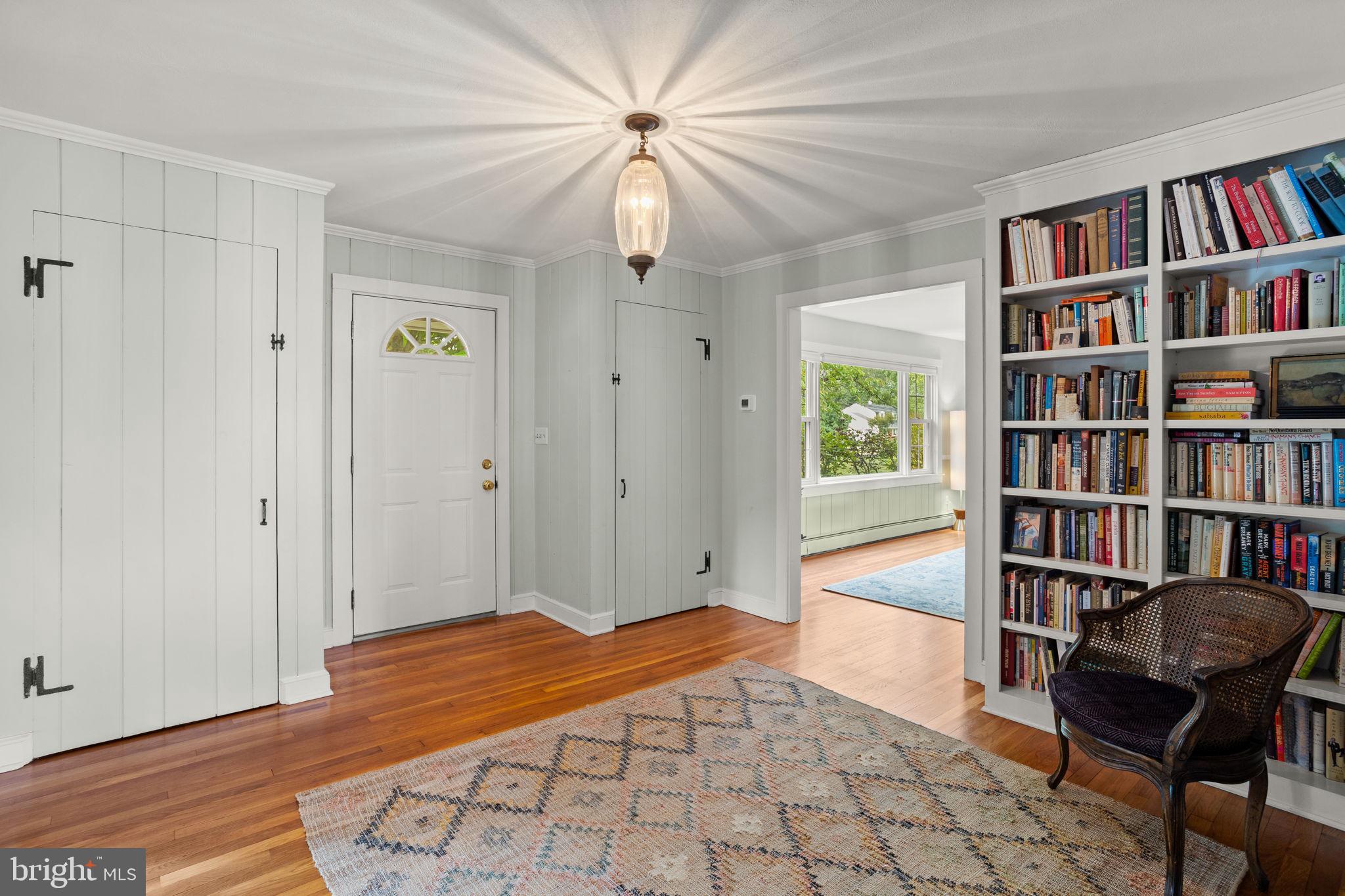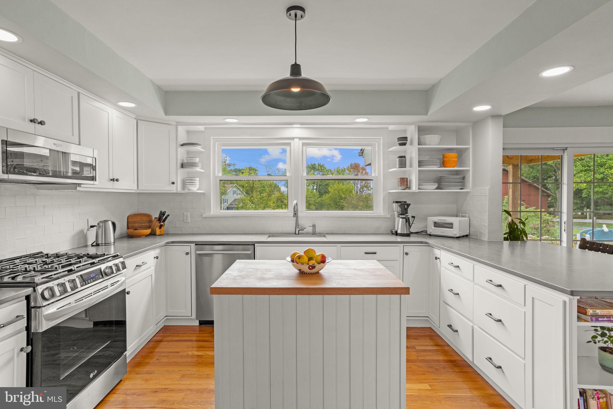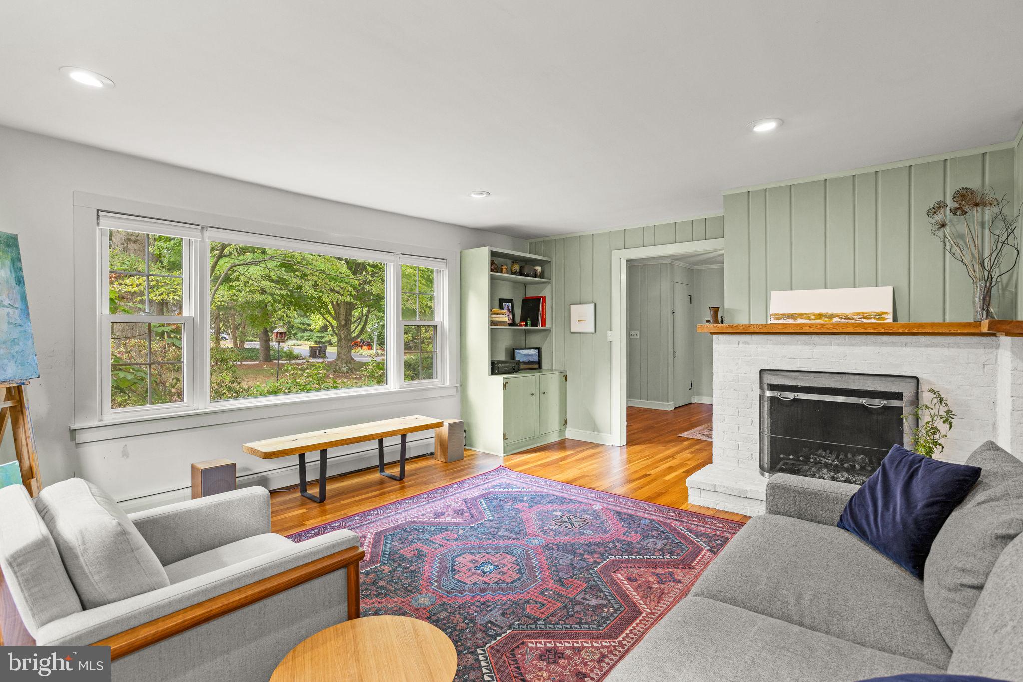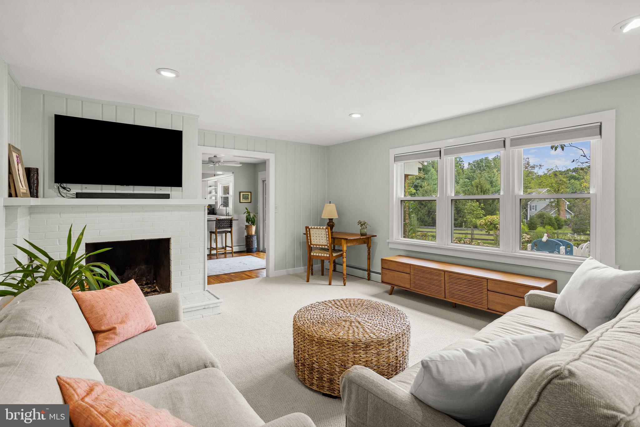 Drive down a quiet country road to be greeted by this charming colonial nestled on over 2 acres of tranquil Bucks County land. Conveniently located within Solebury Township for an easy commute, this 5 bed, 3 bath home warmly welcomes you from the time you step inside. As you approach the front of the home, you will admire the flagstone walkway, colorful garden beds and mature trees, which all contribute to its intriguing curb appeal. Enter the spacious foyer adorn with custom corner bookshelves to find a meticulously maintained interior featuring original hardwood floors and neutral tones. The entrance is flanked by the cozy living room boasting a brick wood burning fireplace and sizeable dining room, both decorated with custom crafted built-ins. Discover many noteworthy features as you make your way around the amazing space including the wide entrance ways, special wall enhancements and the abundant natural light from the perfectly positioned windows and doors. The open gourmet kitchen, with its serene garden views, opens through a set of French doors to a large patio area, creating a seamless flow between indoor and outdoor living. The eat-in kitchen is a chef's dream, boasting rich cabinetry, attractive quartz countertops, a butcher block topped center island, coordinating tile backsplash, new gas range and a useful pantry closet for storage. Adjacent, the family room with its second wood burning fireplace, offers a warm and inviting space to gather or unwind after a long day, especially during the crisp evenings. A hallway off the kitchen houses a convenient laundry room, full bath, and second entryway with easy access to the 2-car garage and backyard rounding out the main level. Retreat upstairs to the roomy primary suite with ample closet space and ensuite full bath featuring tile flooring, newly updated vanity, walk-in shower and dressing area. Four additional bedrooms, each sharing a remodeled stylish hall bathroom complete the second floor. The lower level, currently used for a gym, provides additional living space and awaits your ideas! Outside, the fully fenced-in backyard is surrounded by mature landscape for character and privacy while a sizable patio invites you to relax and enjoy the sounds of nature and tranquility. A neighboring barn on the property offers versatility--originally utilized for raising horses this space would be ideal for a car enthusiast, handyman's workshop or simply extra storage for lawn equipment and more. Come and explore the timeless appeal of this home and the serene surroundings where charm meets modern convenience and custom finishes elevate every room.