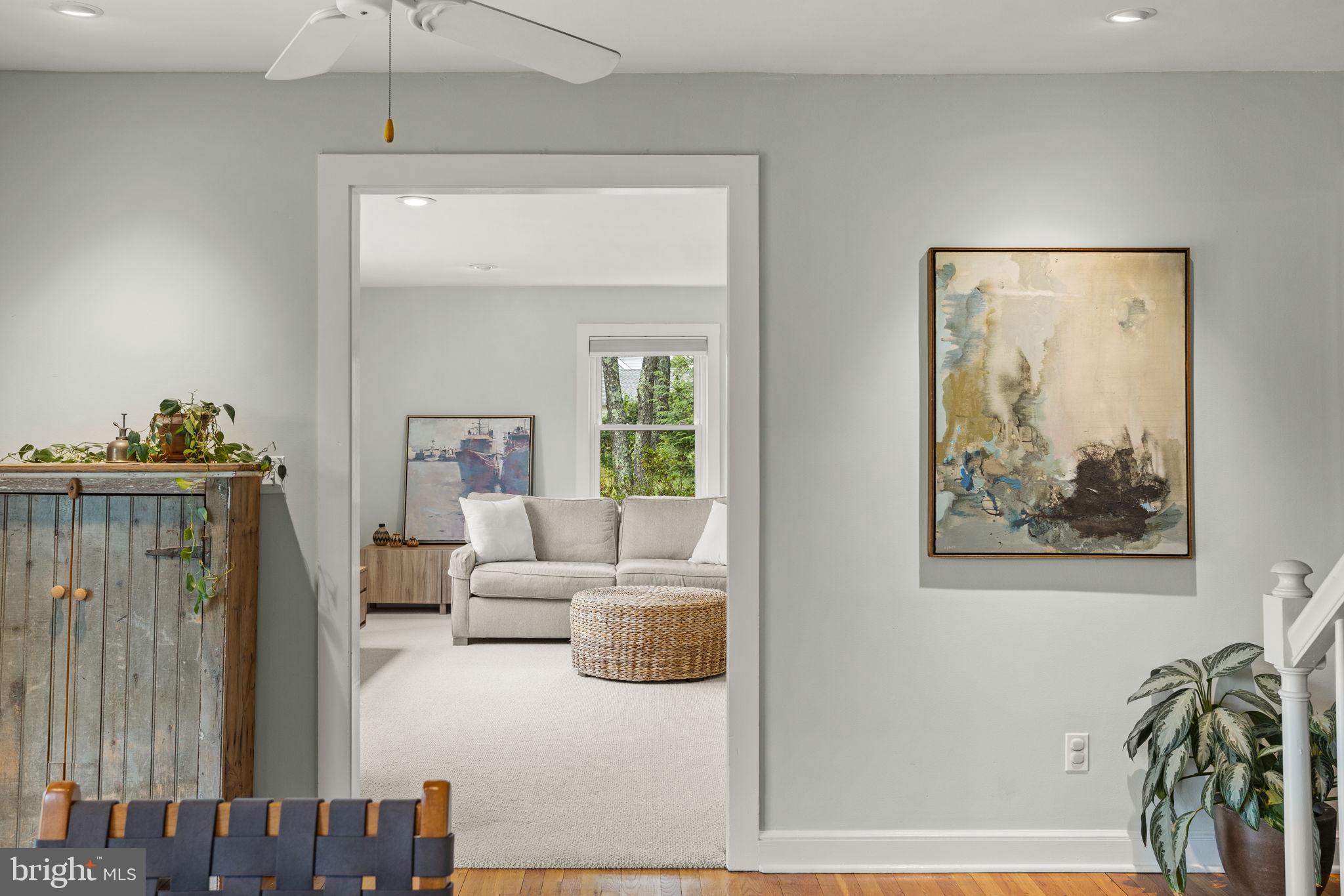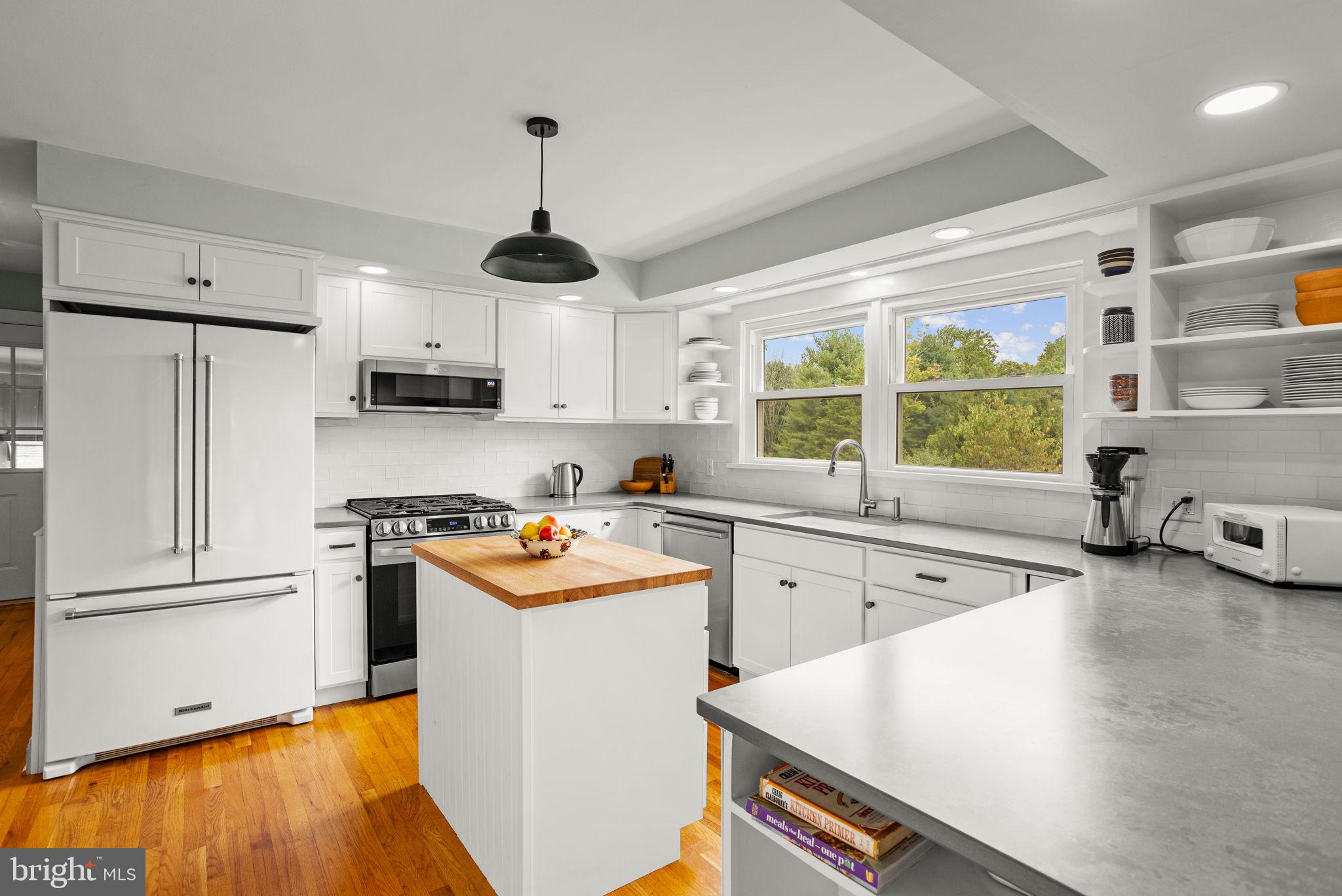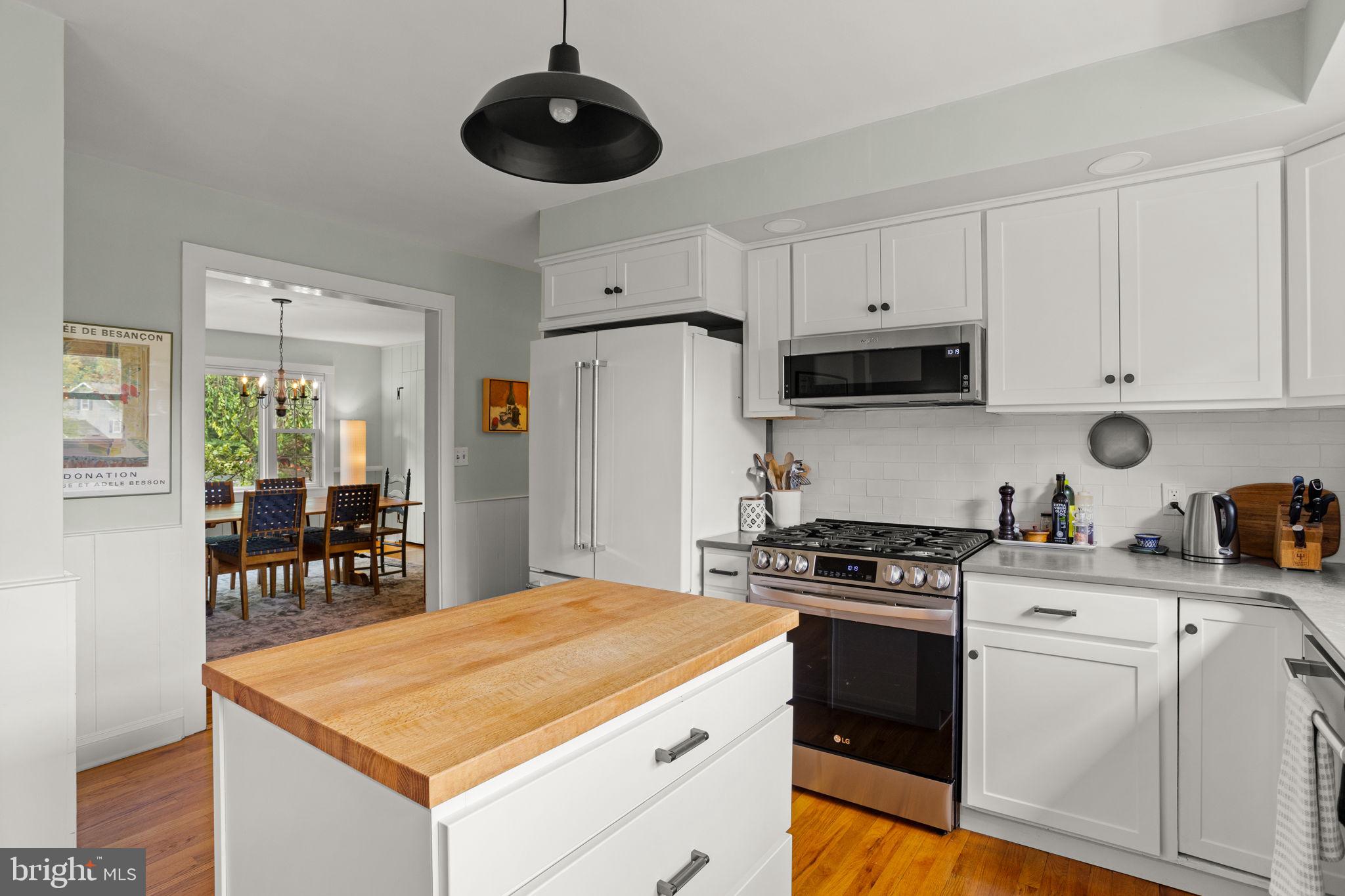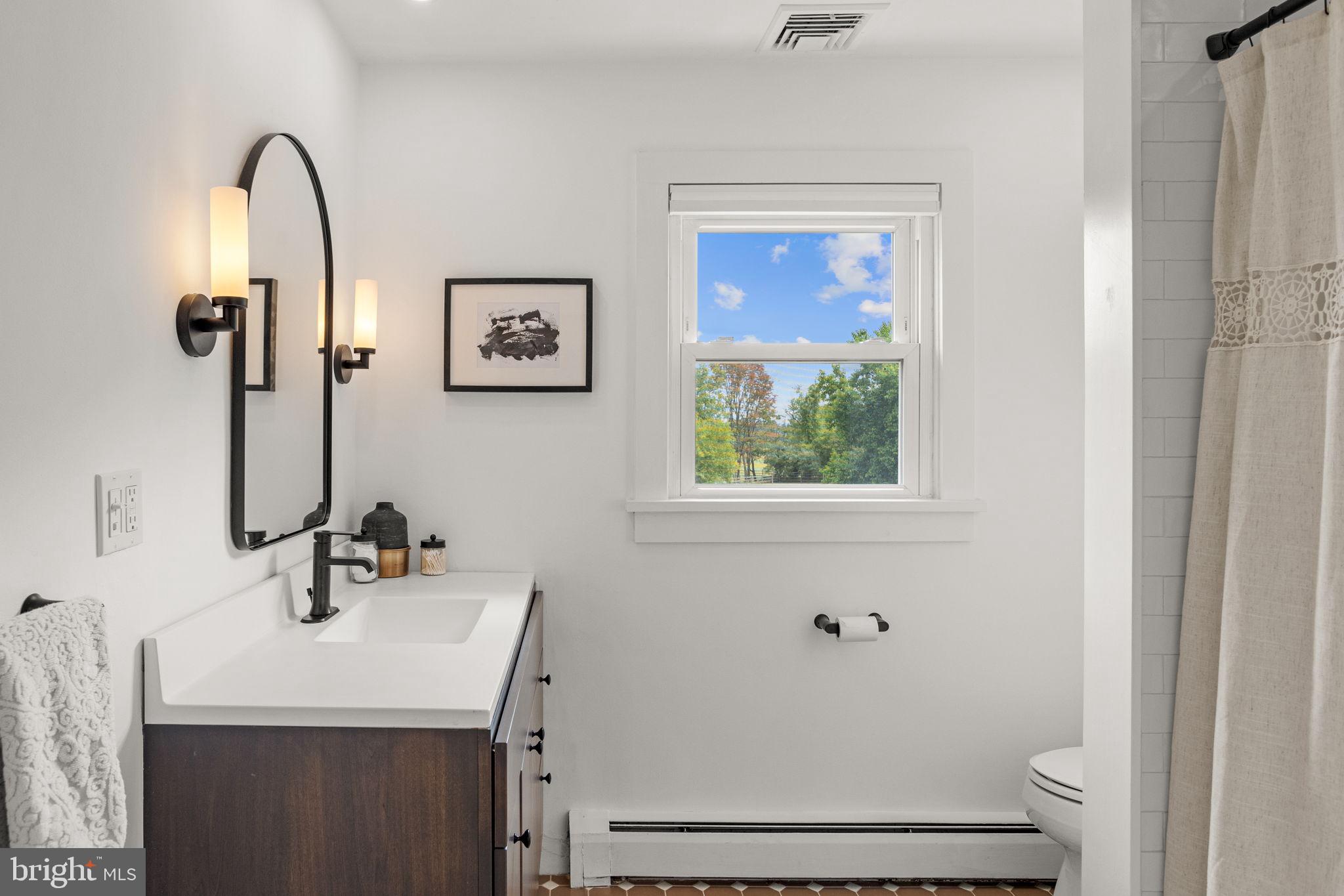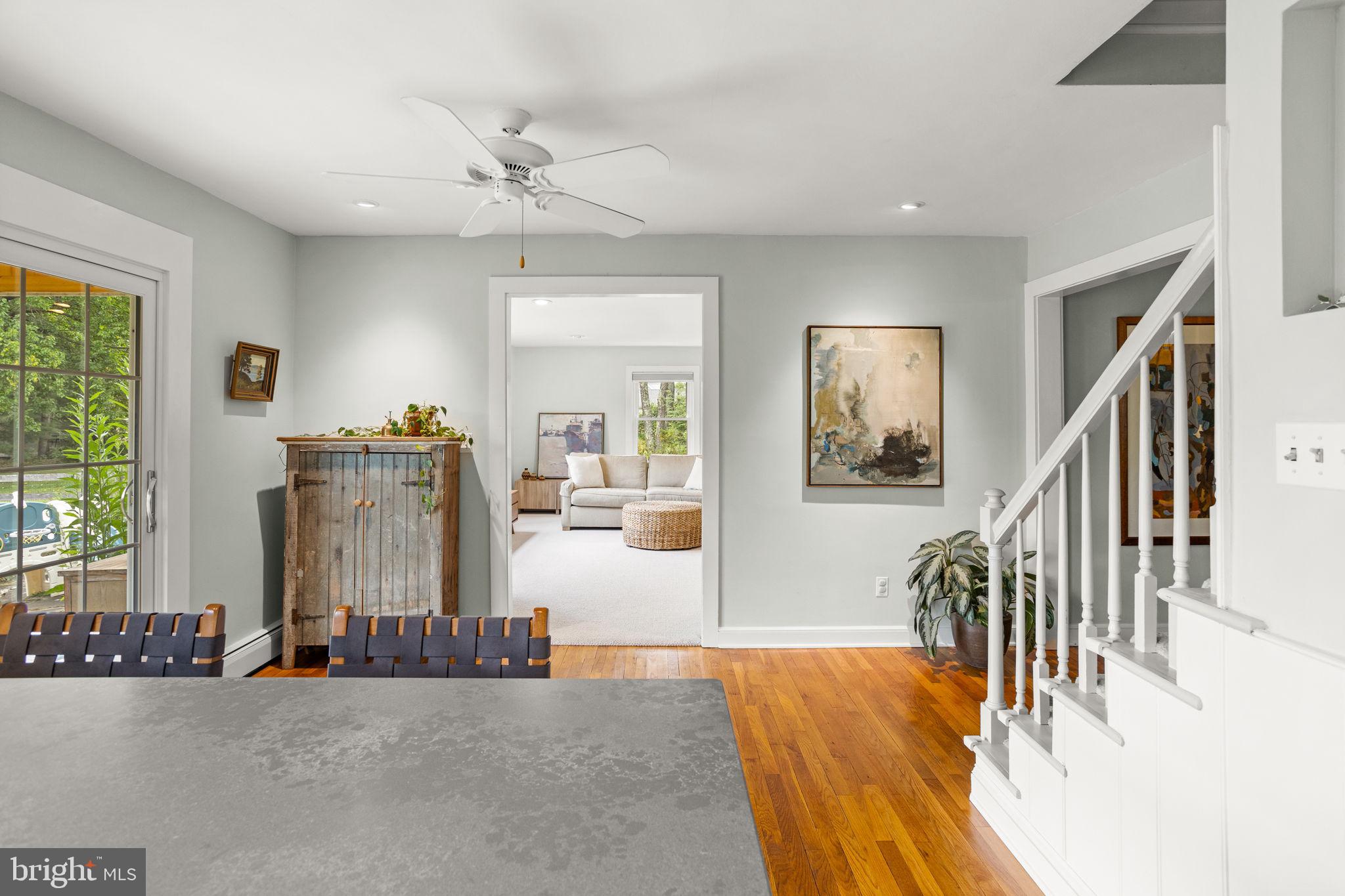 Drive down a quiet country road to be greeted by this charming colonial nestled on over 2 acres of tranquil Bucks County land. Conveniently located within Solebury Township for an easy commute, this 5 bed, 3 bath home warmly welcomes you from the time you step inside. As you approach the front of the home, you will admire the flagstone walkway, colorful garden beds and mature trees, which all contribute to its intriguing curb appeal. Enter the spacious foyer adorn with custom corner bookshelves to find a meticulously maintained interior featuring original hardwood floors and neutral tones. The entrance is flanked by the cozy living room boasting a brick wood burning fireplace and sizeable dining room, both decorated with custom crafted built-ins. Discover many noteworthy features as you make your way around the amazing space including the wide entrance ways, special wall enhancements and the abundant natural light from the perfectly positioned windows and doors. The open gourmet kitchen, with its serene garden views, opens through a set of French doors to a large patio area, creating a seamless flow between indoor and outdoor living. The eat-in kitchen is a chef's dream, boasting rich cabinetry, attractive quartz countertops, a butcher block topped center island, coordinating tile backsplash, new gas range and a useful pantry closet for storage. Adjacent, the family room with its second wood burning fireplace, offers a warm and inviting space to gather or unwind after a long day, especially during the crisp evenings. A hallway off the kitchen houses a convenient laundry room, full bath, and second entryway with easy access to the 2-car garage and backyard rounding out the main level. Retreat upstairs to the roomy primary suite with ample closet space and ensuite full bath featuring tile flooring, newly updated vanity, walk-in shower and dressing area. Four additional bedrooms, each sharing a remodeled stylish hall bathroom complete the second floor. The lower level, currently used for a gym, provides additional living space and awaits your ideas! Outside, the fully fenced-in backyard is surrounded by mature landscape for character and privacy while a sizable patio invites you to relax and enjoy the sounds of nature and tranquility. A neighboring barn on the property offers versatility--originally utilized for raising horses this space would be ideal for a car enthusiast, handyman's workshop or simply extra storage for lawn equipment and more. Come and explore the timeless appeal of this home and the serene surroundings where charm meets modern convenience and custom finishes elevate every room.