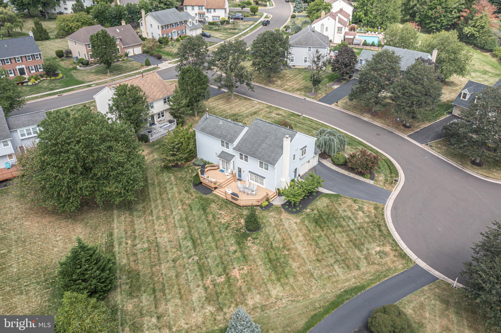 Welcome to 4 Gladiola Cir, a rare find in Newtown Grant that offers 5 second floor bedrooms, a quiet cul de sac homesite and on one of the largest private lots in the community. With a blend of modern comfort and timeless appeal, this impeccable and updated home is an incredible opportunity to call home! Architectural features include a vaulted ceiling Living Room with skylights, spacious Dining Room, a cozy Family Room with a stone gas fireplace and wet bar for entertaining. The primary suite with an updated ensuite bath and walk-in closet, along with the additional well-sized bedrooms and renovated hall bathroom, offer comfort and functionality for the whole family. The finished basement provides ample space for entertainment, workout space and substantial storage. The outdoor space with a spacious two tier deck is perfect for enjoying peaceful entertaining. Significant upgrades include newer HVAC and hot water heater. The extensive community amenities, include a pool, sports courts, club house and scenic trails, enhance the lifestyle offered by living in Newtown Grant. The location's convenience to downtown Newtown, I-295, and the award-winning Council Rock School District make this a great choice for the discerning Buyer looking for the best in community living!